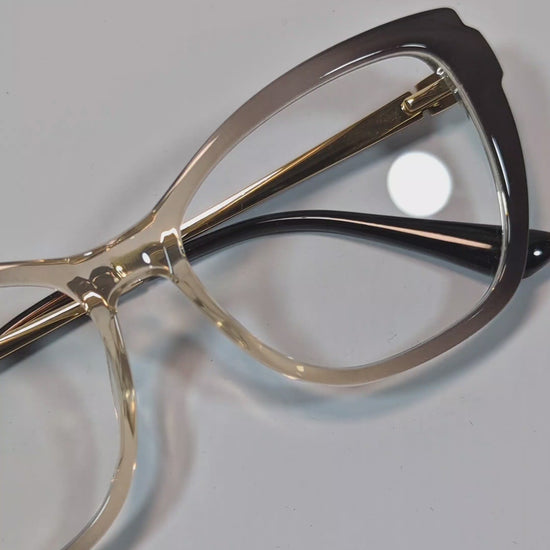 A bold butterfly frame meets sleek metal temples for a confident, fashion-forward look. The black and gray transparent gradient adds depth and edge, while AC lenses help reduce screen-related strain and radiation exposure—perfect for street style, content creation, and everyday wear.